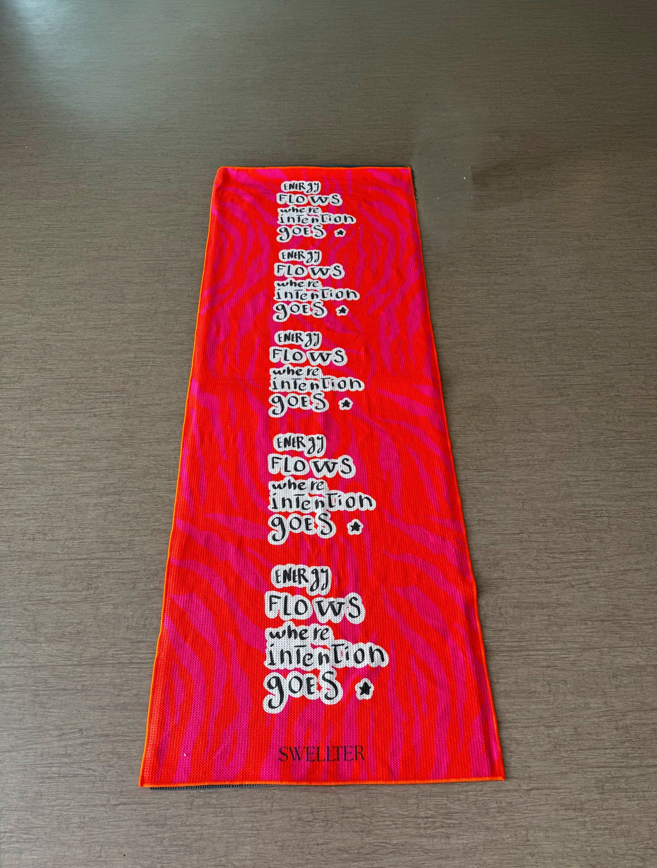 The bold pattern and mantra design are meant to pull you inward, helping you drop distractions and move with purpose. Whether you’re deep in a hot flow, pushing through sculpt, or finding stillness on the mat, this towel meets you exactly where you are.